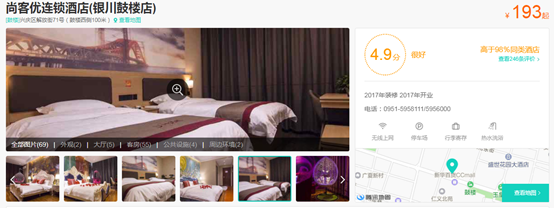 这家尚客优酒店位于宁夏银川兴庆区解放街71号(鼓楼西侧100米),房价高出不少,但供不应求,美团评分也高达4.9分,住客好评,让周边经济型酒店各种羡慕。那么,到底是什么原因让尚客优酒店(银川鼓楼店)如此火爆?